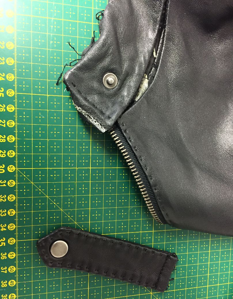 - J’ai glissé l’attache entre le cuir et le zip et j’ai recousu.
