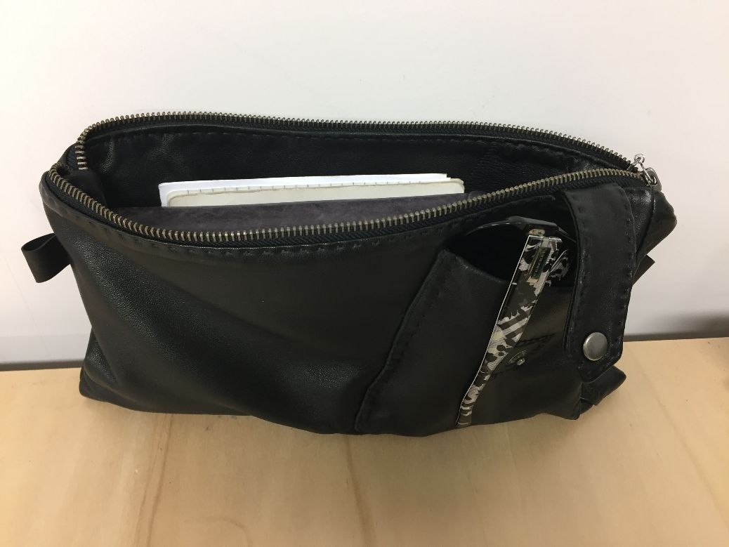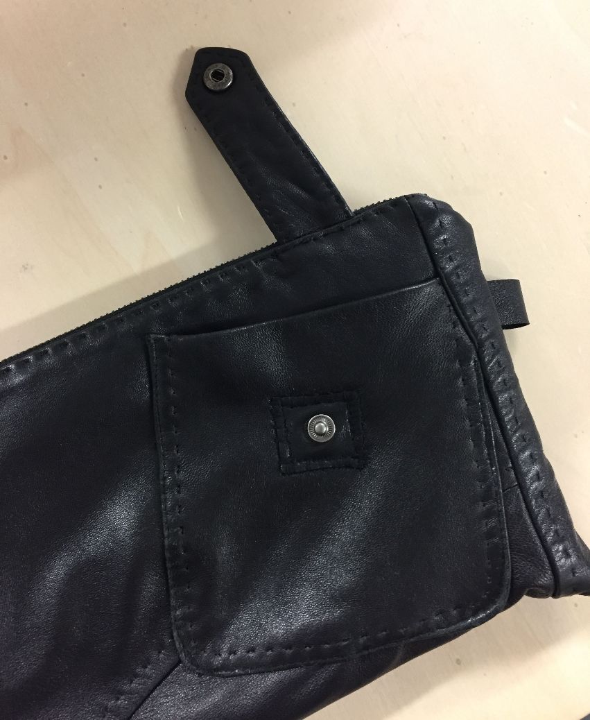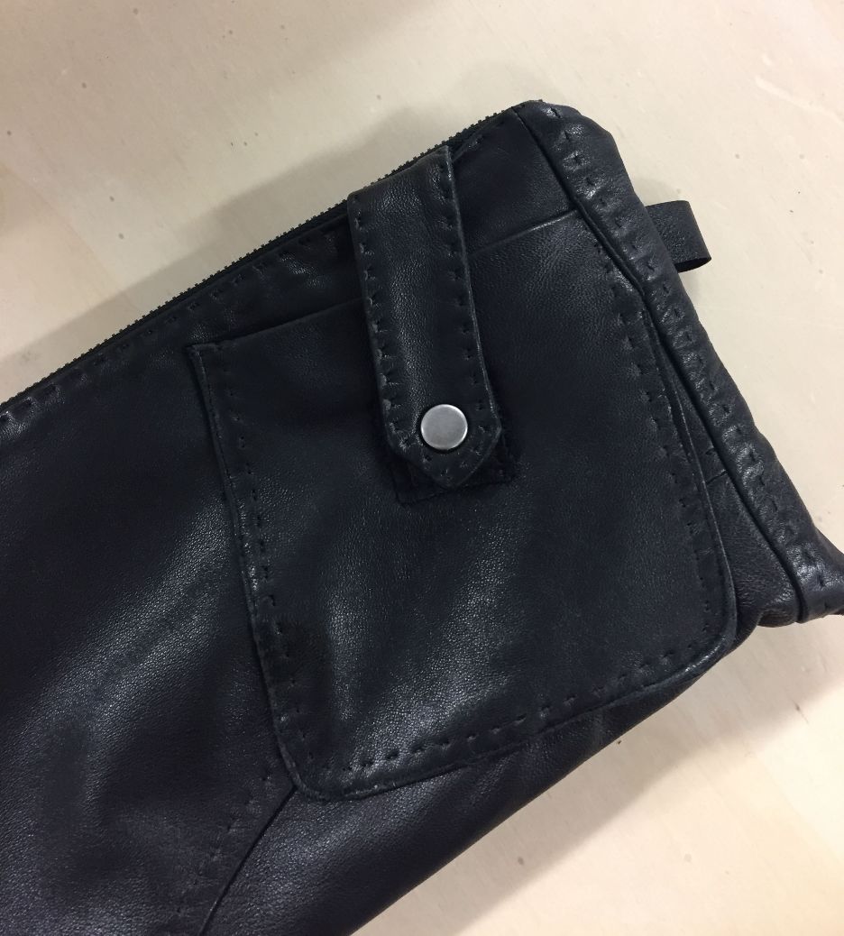 Une amie m’avait promis un sac rempli de vêtements, elle m’avait aussi dit qu’elle me commanderai une pochette unique car elle ne voulait pas avoir la même que tout le monde. Lorsqu’elle m’a passé le sac et ayant vu mes transformations, elle m’a fait une demande particulière: essayer de lui faire une pochette avec son ancien blouson en cuir.