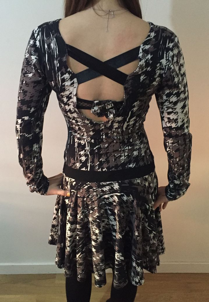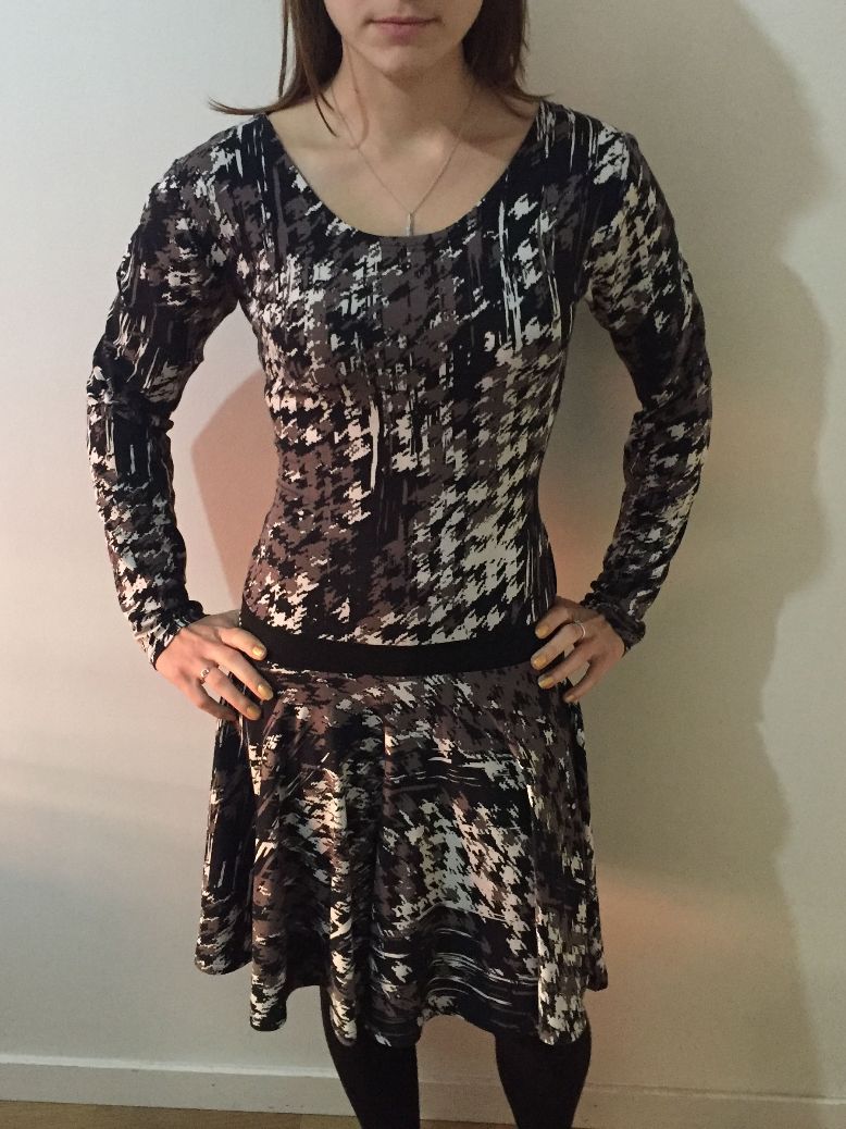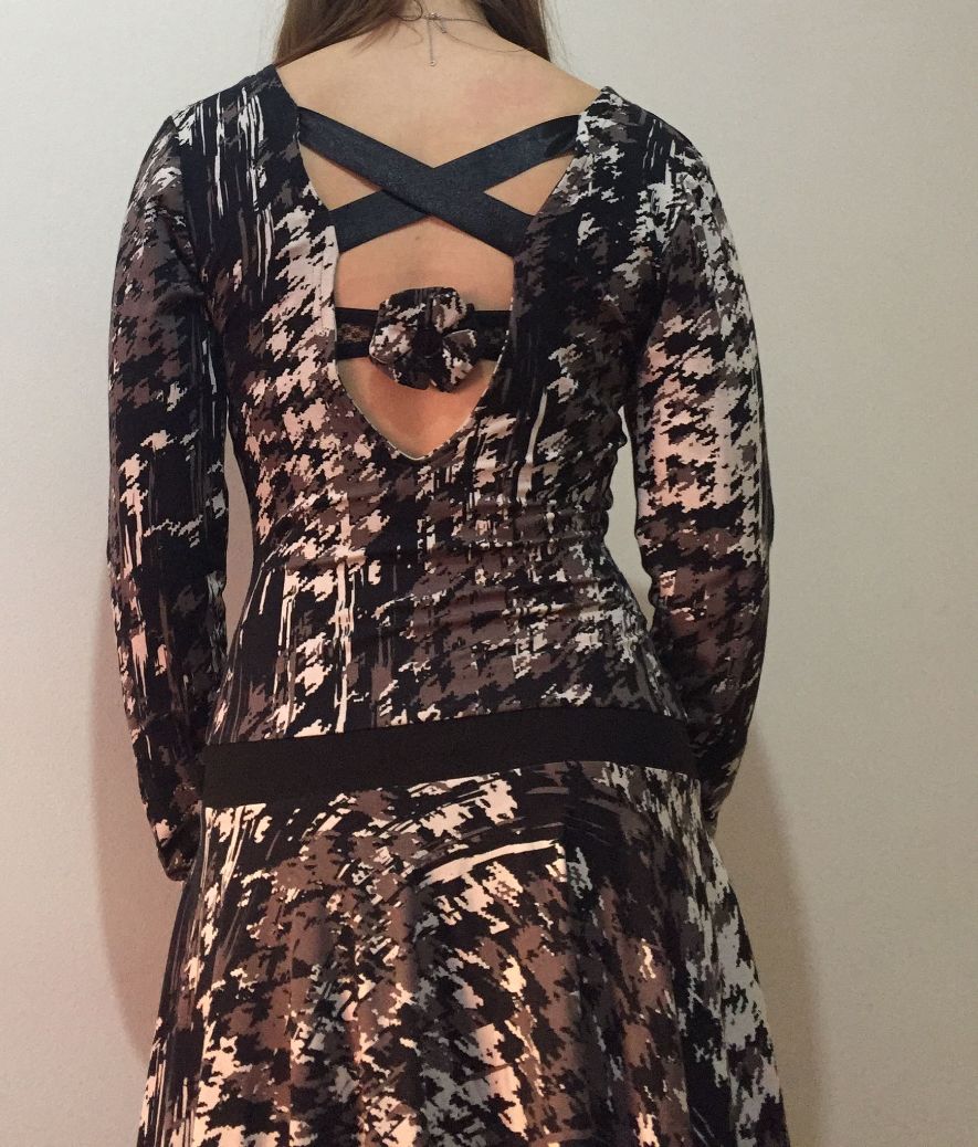 Au départ, je voulais modifier une robe que je n’ai jamais mise. Ce que je voulais faire n’était malheureusement pas possible car la robe n’avait pas assez de tissu. Je me suis donc mise au travail pour me faire une robe entièrement.