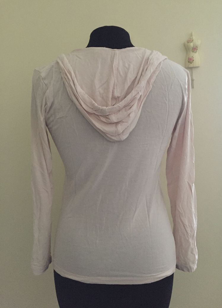 Il s’agit d’un t-shirt manche longue en jersey que j’aimais beaucoup! Je le mettais encore l’hiver dernier mais en le ressortant cette année, je me suis dit qu’il fallait que je lui donne un petit coup de jeune! C’est surtout qu’avec le temps, il avait un peu rétrécit au lavage. Il était assez court et ces manches étaient entre les manches longues et les manches 3/4.