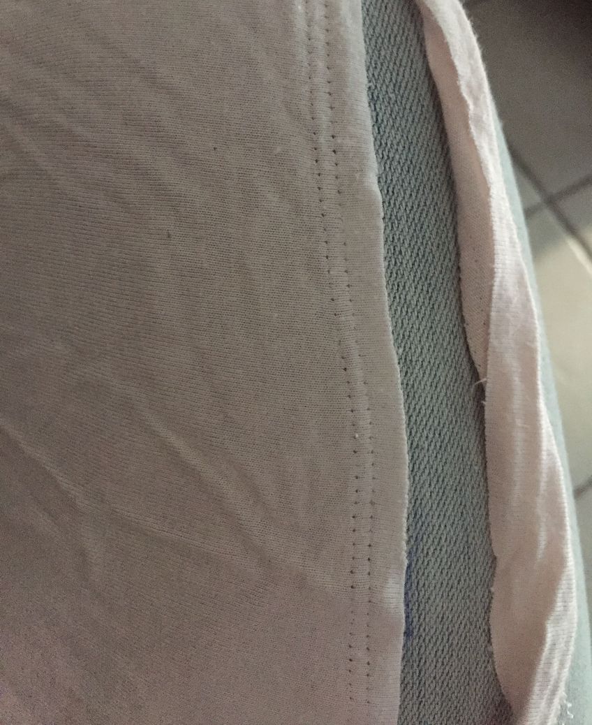 - Assembler les deux côtés des bandes au surjet 4 fils lorsqu’elle se rejoignent.
