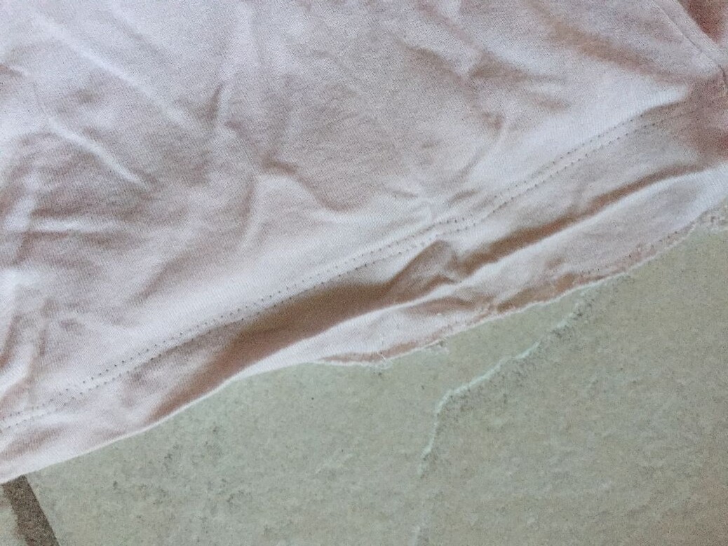 - Découdre à l’aide du découvit les ourlets du t-shirt, en bas et aux manches et couper au niveau de la pliure.