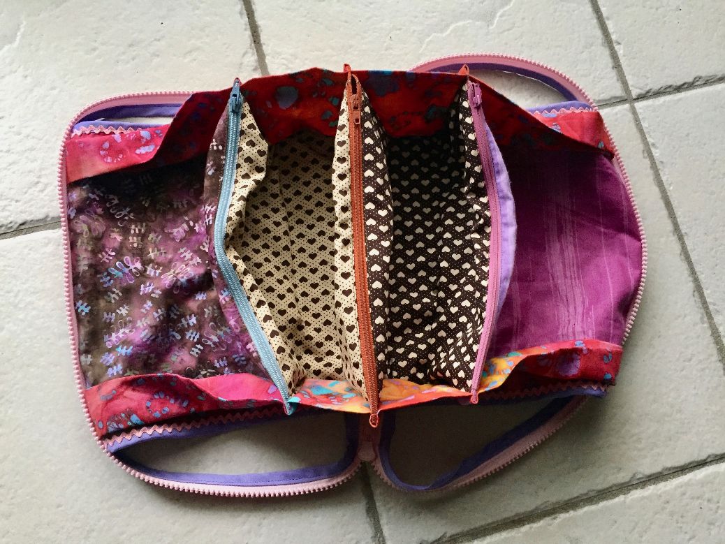 En plus, nous avions toutes flashé sur la trousse multipoches. Alors comme nous avions été sages comme des images 😁, Les Machines à Coudre de Patricia nous a offert pour la nouvelle année, une journée atelier trousse avec Bernadette.